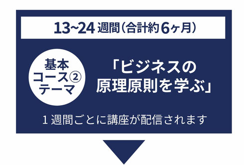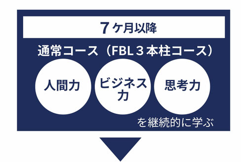 7ヶ月目以降は「FBL3本柱」である、「人間力」「ビジネス力」「思考力」の講座を継続的、かつ徹底的に学んでいただきます(以下参照。毎週第1~3金曜に配信)。
