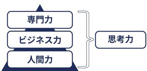 ビジネスマンの基本能力は「人間力」「ビジネス力」「思考力」で構成されています。